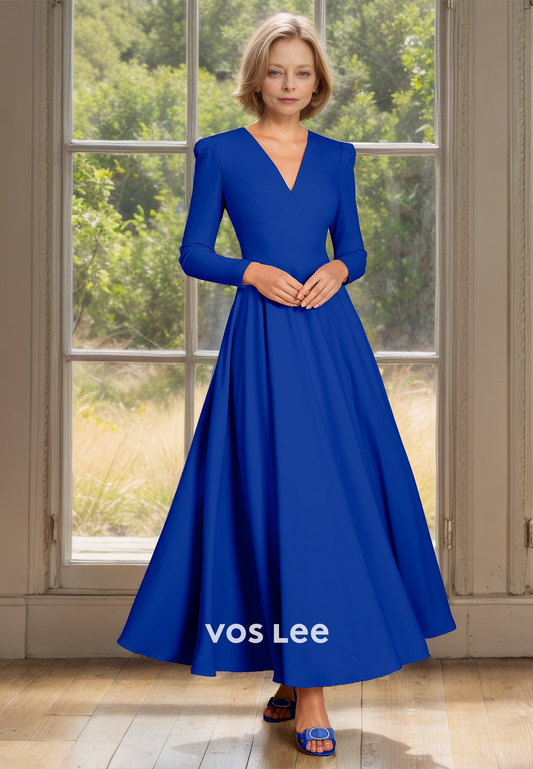 Graceful A-Line V Neck Illusion Long Sleeves Backless Mother of the Evening Dress