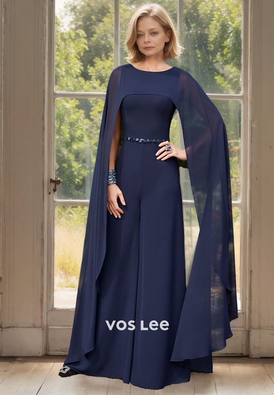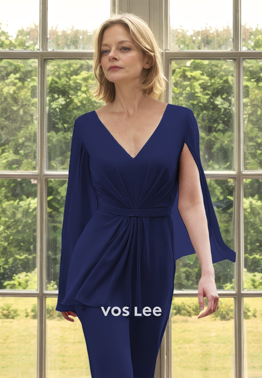 Elegant Jumpsuits V Neck Long Sleeves Back Zipper Mother of the Bride Dress