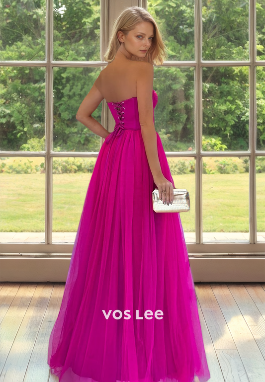Fuchsia Sweetheart Sleeveless Lace Up Sweep Train Tulle Mother of the Bride Dress