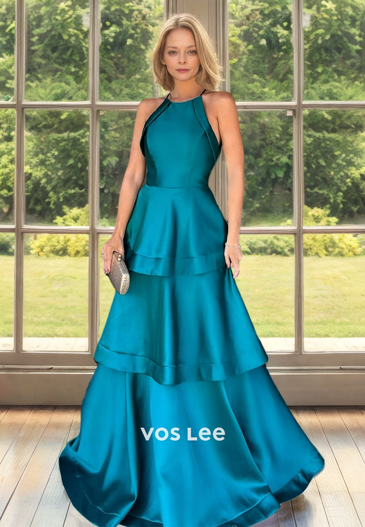 Charming Halter A-Line Back Zipper Tiered Satin Mother of the Bride Dress