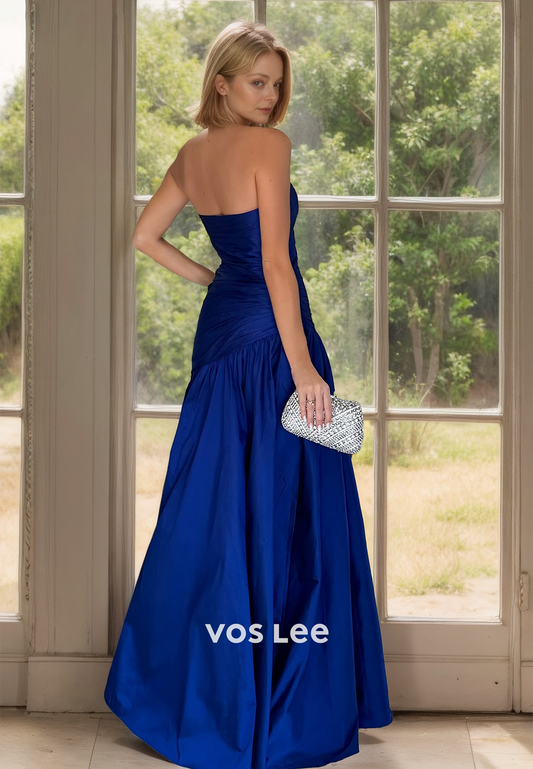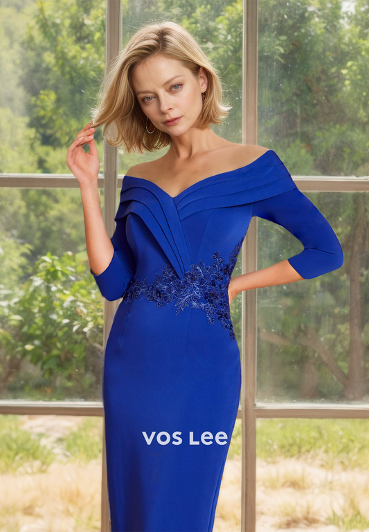 Royal Blue Off Shoulder A-Line Sleeveless Pleated Satin Mother of the Bride Dress