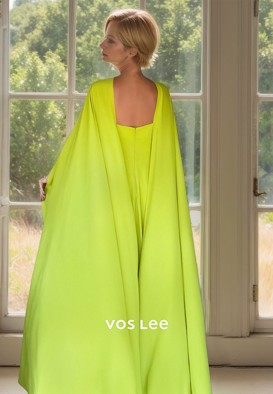Simple Sheath Strapless Puff Sleeves Floor Length Satin Mother of the Evening Dress