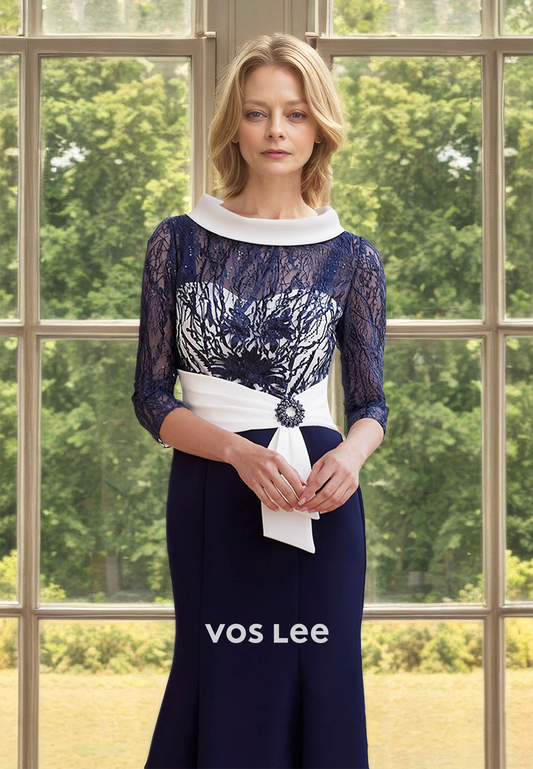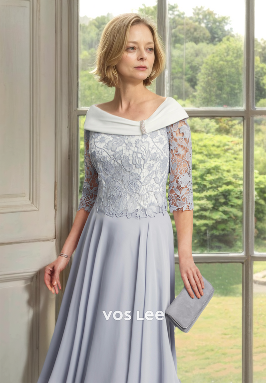 A-Line Off Shoulder Half Sleeves Belt Lace Appliques Mother of the Formal Dress