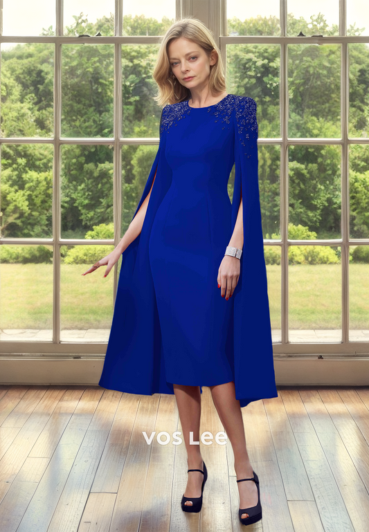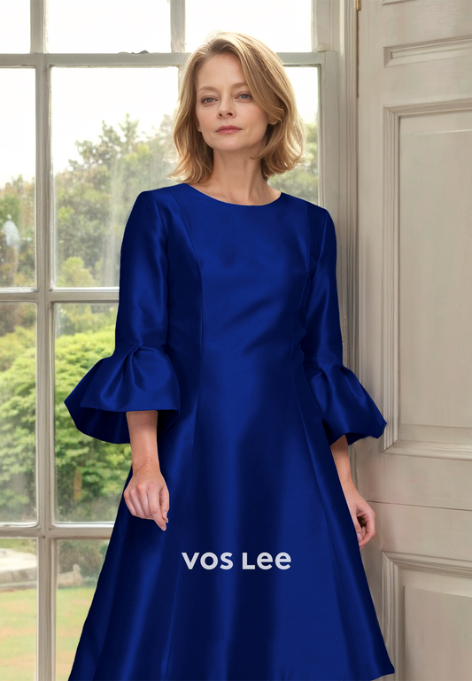 Column V Neck Knee Length Half Sleeves Satin Mother of the Formal Dress