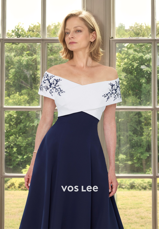 Elegant A-Line Off Shoulder Knee Length Lace Appliques Mother of the Party Dress