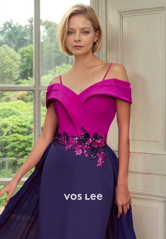 Column Off Shoulder Spaghetti Straps Lace Appliques Mother of the Bride Dress