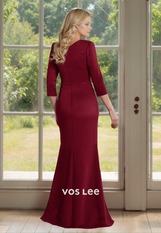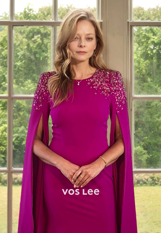 Unique Scoop Neck Column Long Sleeves Sequins Satin Mother of the Bride Dress