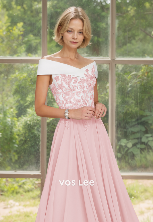 Graceful A-Line Off Shoulder Sleeveless Lace Appliques Long Mother of the Party Dress