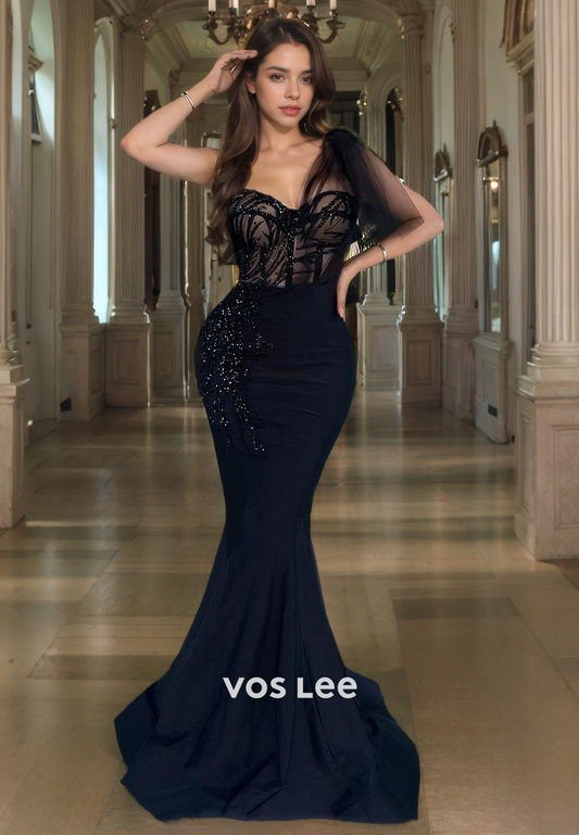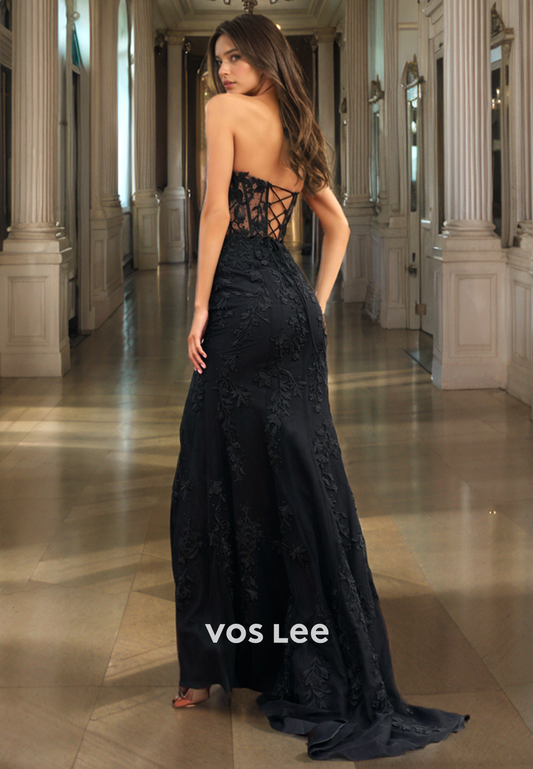 Elegant Black Lace Evening Prom Dresses Sweetheart Strapless Club Night Party Dress
