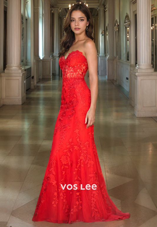 Sweetheart Strapless Lace Red Quinceanera Dress Sleeveless Elegant Prom Dress