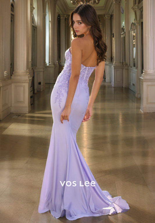 Graceful Sweetheart Lilac Strapless Long Prom Dress Mermaid Zipper Back Party Dresses