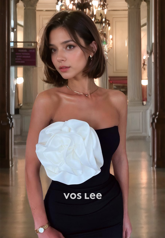 Elegant 3D Flower Column Pageant Dress Strapless Floor Length Simple Prom Gown