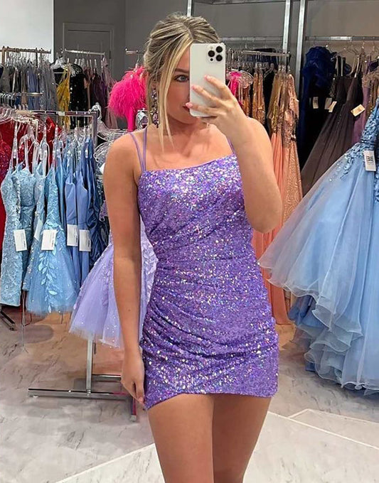 Sparkly Spaghetti Straps Sequin Homecoming Dress