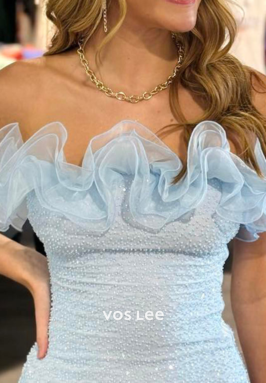 Sparkle & Shine Off the Shoulder Pleated Sheath Homecoming Dresses