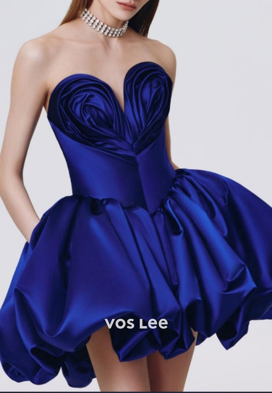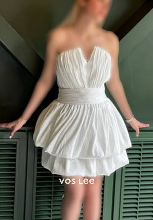 A-Line V Neck Strapless Corset Pleated Satin Short Homecoming Dresses