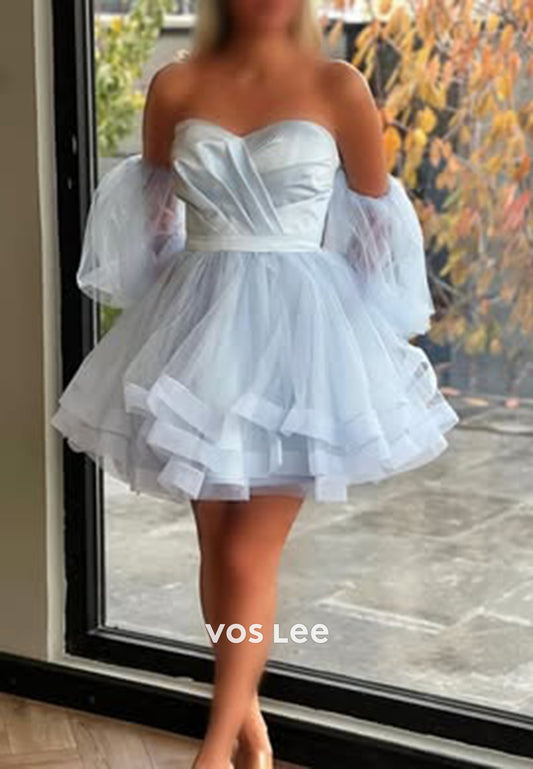 A-Line Tulle Short Sleeve Sweetheart Pleated Homecoming Dresses