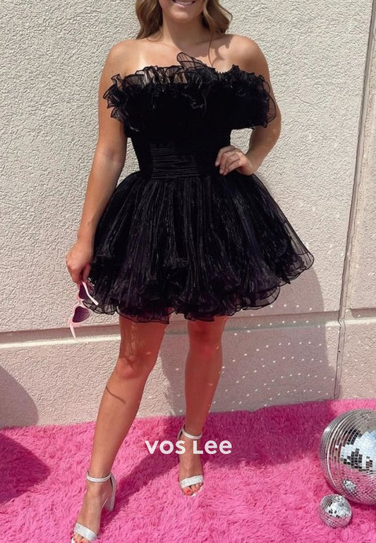 Couture & Classic A-Line Strapless Tulle Pleated Homecoming Dresses