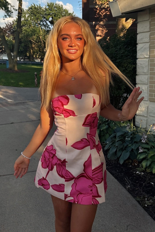 Trendy A Line Strapless Pink Printed Short Homecoming Dress