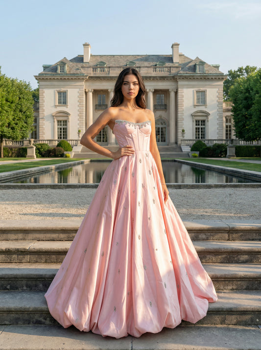 Blush Pink Strapless Ball Gown | Embellished Prom & Evening Dress