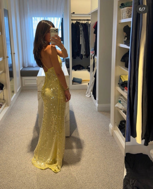 Sunshine Yellow Sequin Mermaid Gown – Disco Glamour for Night Events