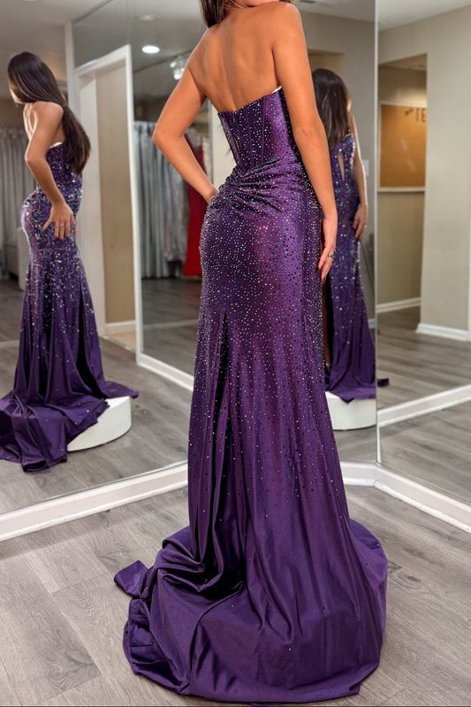 Sparkly Mermaid Sweetheart Purple Corset Prom Dress with Beading
