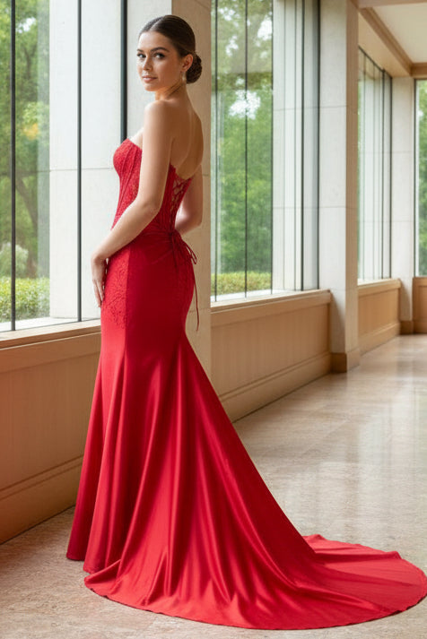 Strapless Appliques Side Slit Mermaid Prom Dress