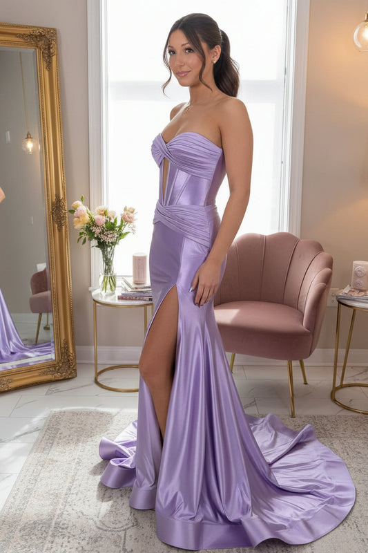 Charming Mermaid Sweetheart Satin Long Prom Dress with Slit