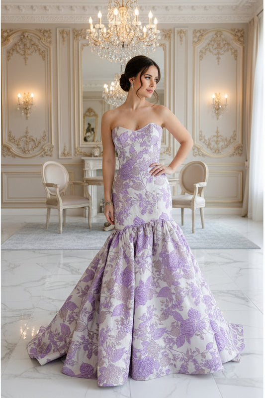 Gorgeous Mermaid Sweetheart Lavender Jacquard Satin Prom Dress