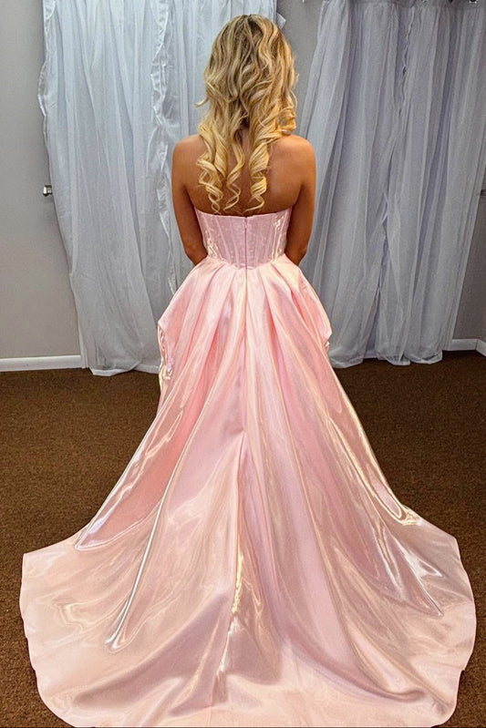 Pink Strapless A-Line Prom Dress Party Dress with Slit