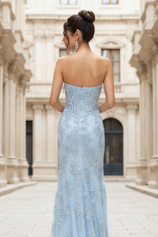Light Blue Appliques Sweetheart Slit Mermaid Prom Gown