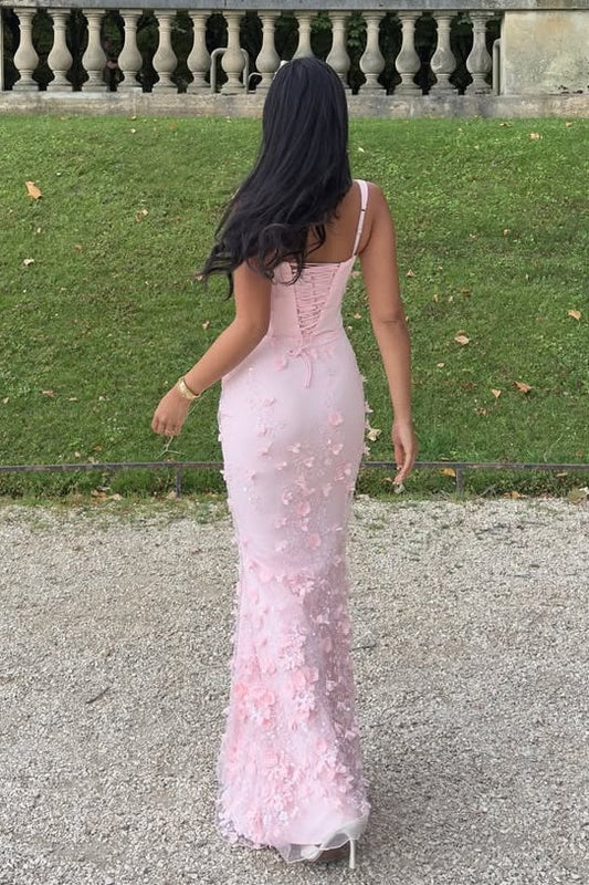 Gorgeous Mermaid Square Neck Pink Long Prom Dress with Flowers