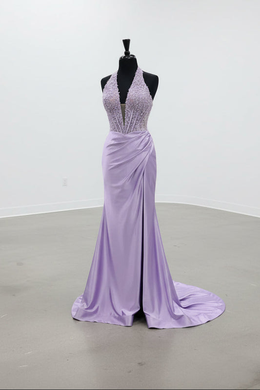 Straps Lilac Satin Mermaid Formal Dress with Bow