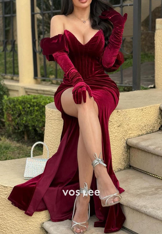 Glamorous & Dramatic Long Sleeves Sweetheart Mermaid Evening Dress with Split