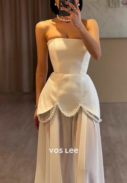 Glamorous & Dramatic Strapless Pearls Illusion Long Formal Dresses