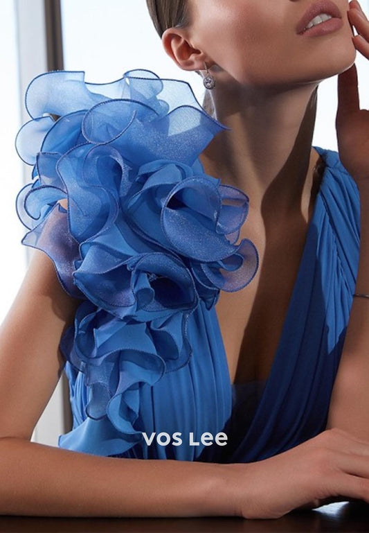 A-Line Asymmetrical Pleated Lace Floral Embellished Evening Dress