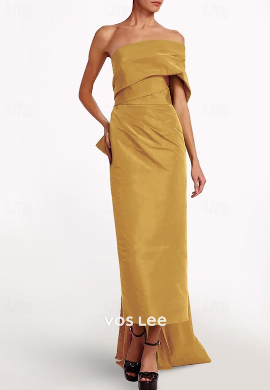 A-Line One Shoulder Pleated Long Evening Dress Formal Dress with Sweep Train