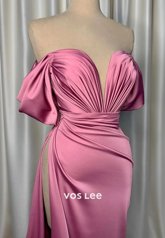 Sexy & Hot V-Neck Pleated Mermaid Evening Prom Dresses with High Split