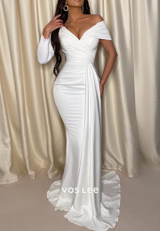 Simple & Casual Long Sleeves Ruched Mermaid Prom Dresses Formal Dresses
