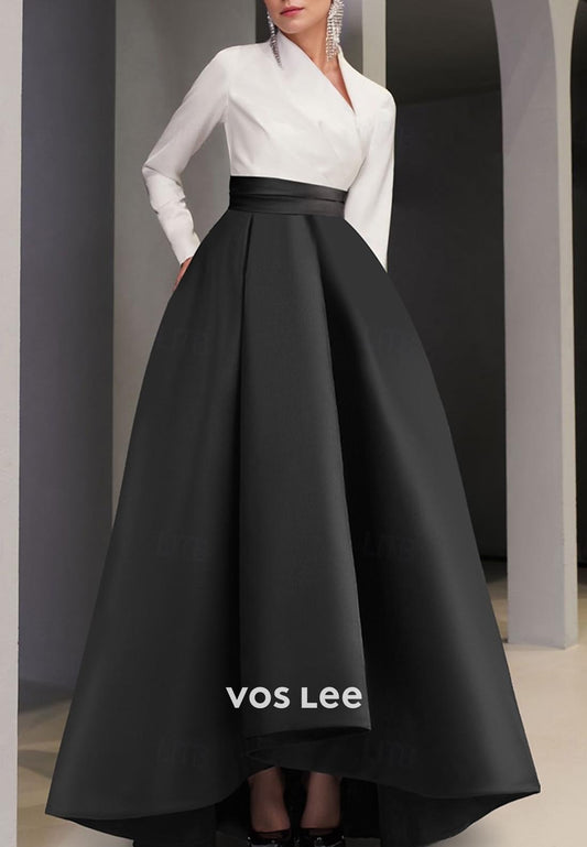 A-Line Long Sleeves Empire Waist High Low Pleated Evening Dress with Train