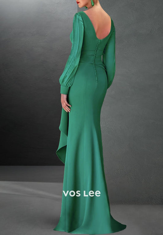 Classic & Timeless Long Sleeves Pleated Mermaid Simple Evening Dress with Train