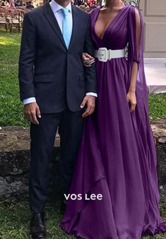 Elegant & Luxurious V-Neck Pleated Split Prom Dresses with Long gloves