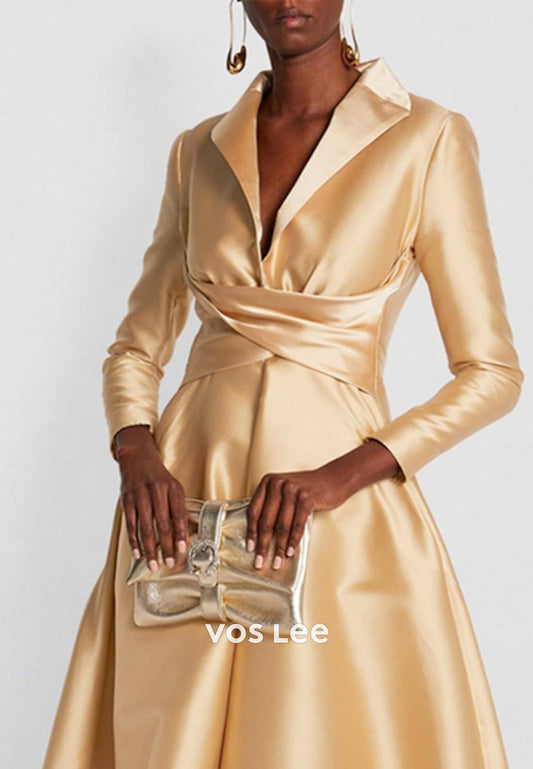 A-Line V Neck Ruched Floor-Length Long Sleeves Sleek Evening Dress