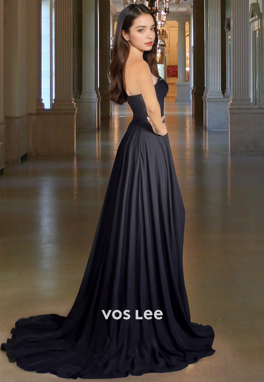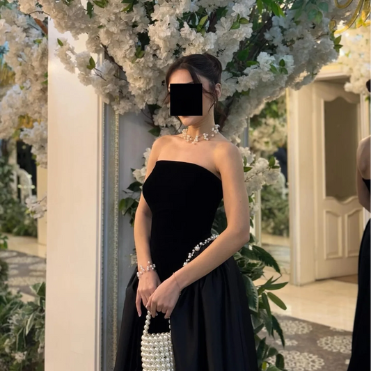 A-Line Pearl Tube Top elegance Black Formal Dresses with Sweep Train