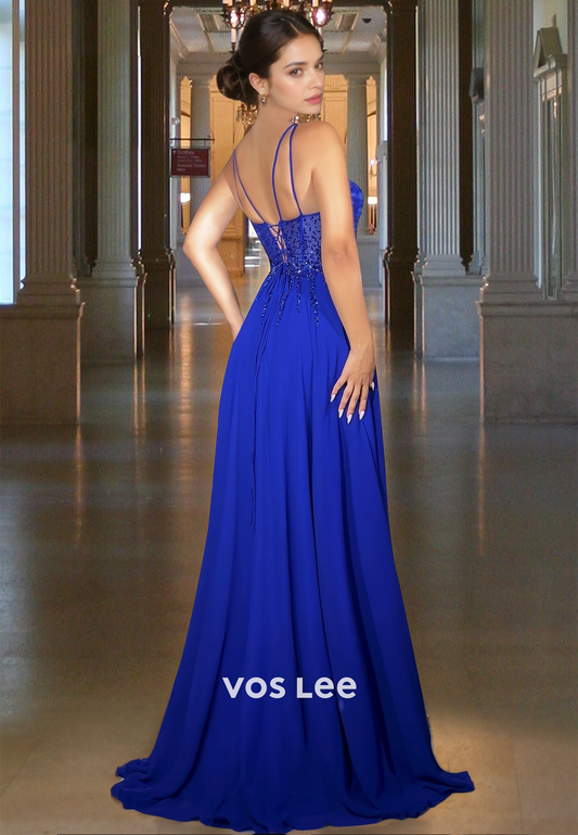 Sparkle Fitted V-Neck Straps Long Evening Dress Formal Party Gown 2025