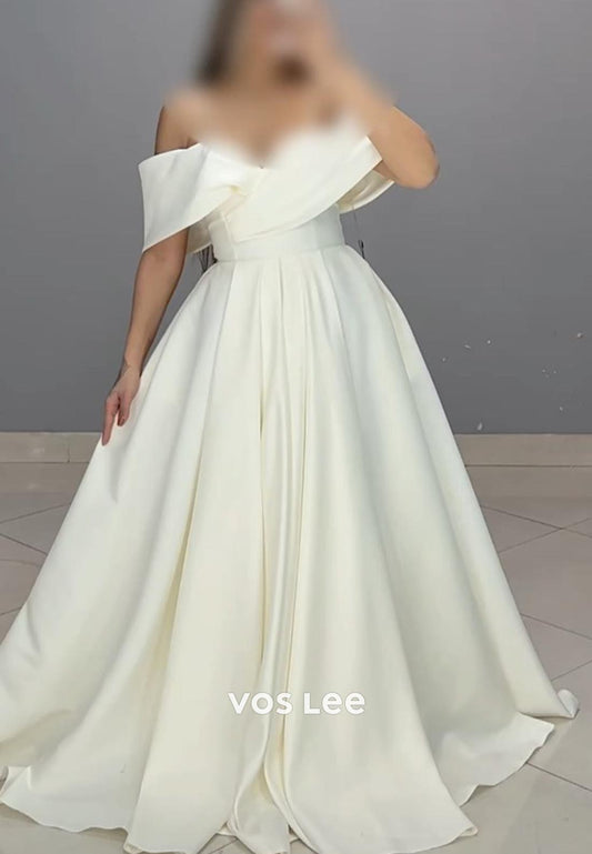 Simple A-Line Off Shoulder Long Sleeves Floor Length Pleated Prom Formal Dress