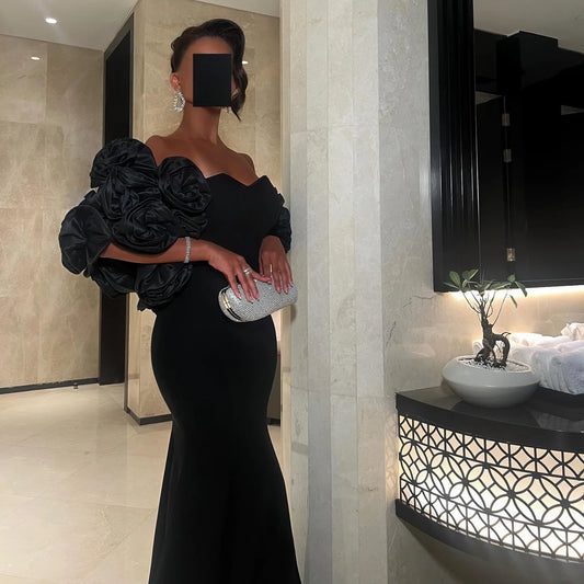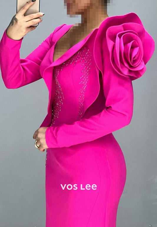 Big Flower V-Neck Long Sleeves Mermaid Formal Party Evening Dress