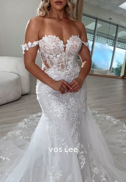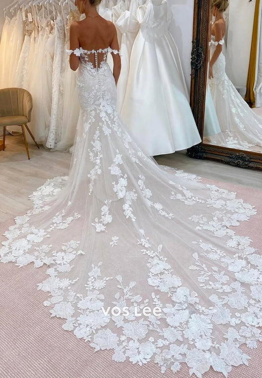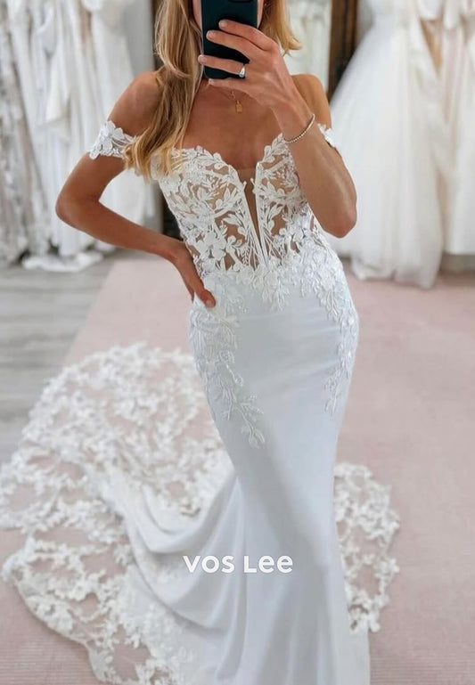 Sexy & Sleek Off the Shoulder Appliques Lace Mermaid Wedding Dresses