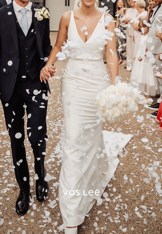 Sexy and Sleek Spaghetti Straps V Neck Mermaid Wedding Dresses