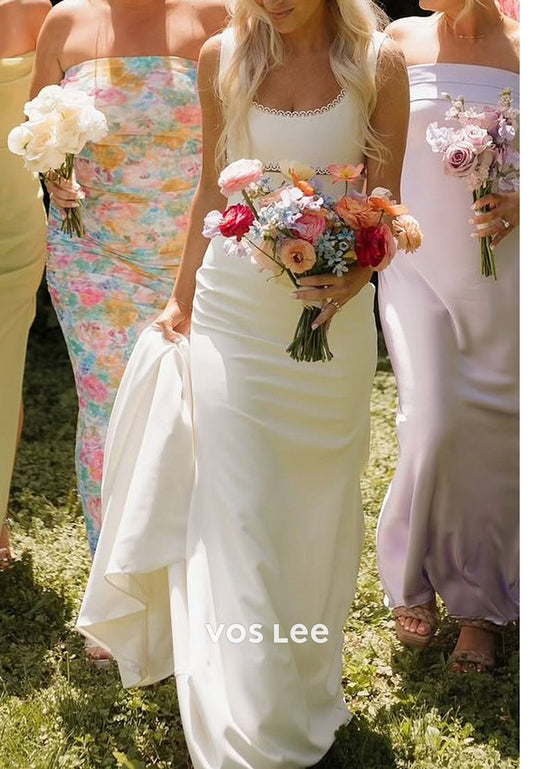 Classic Spaghetti Straps Scoop Trumpet Wedding Dresses with Court Train