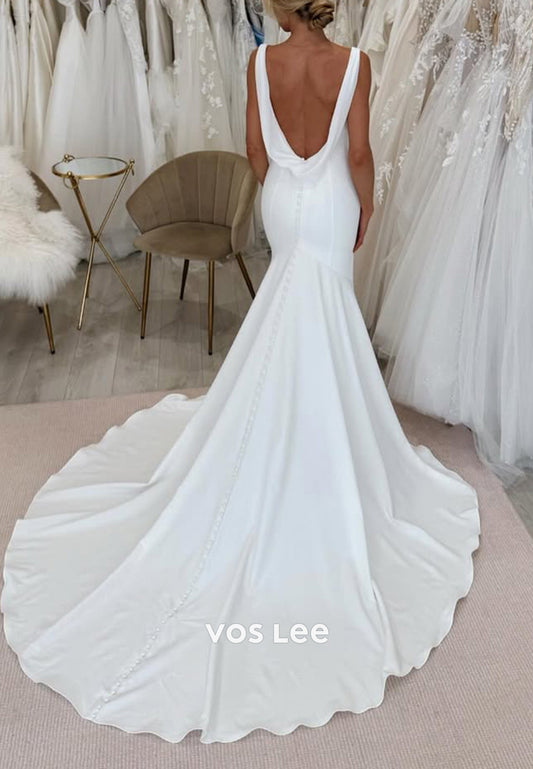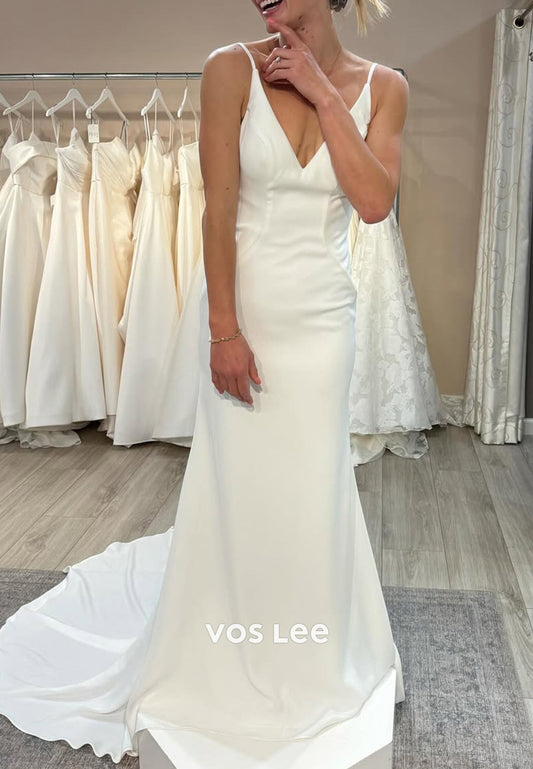 Sexy & Sleek V Neck Spaghetti Straps Mermaid Wedding Dresses with Sweep Train